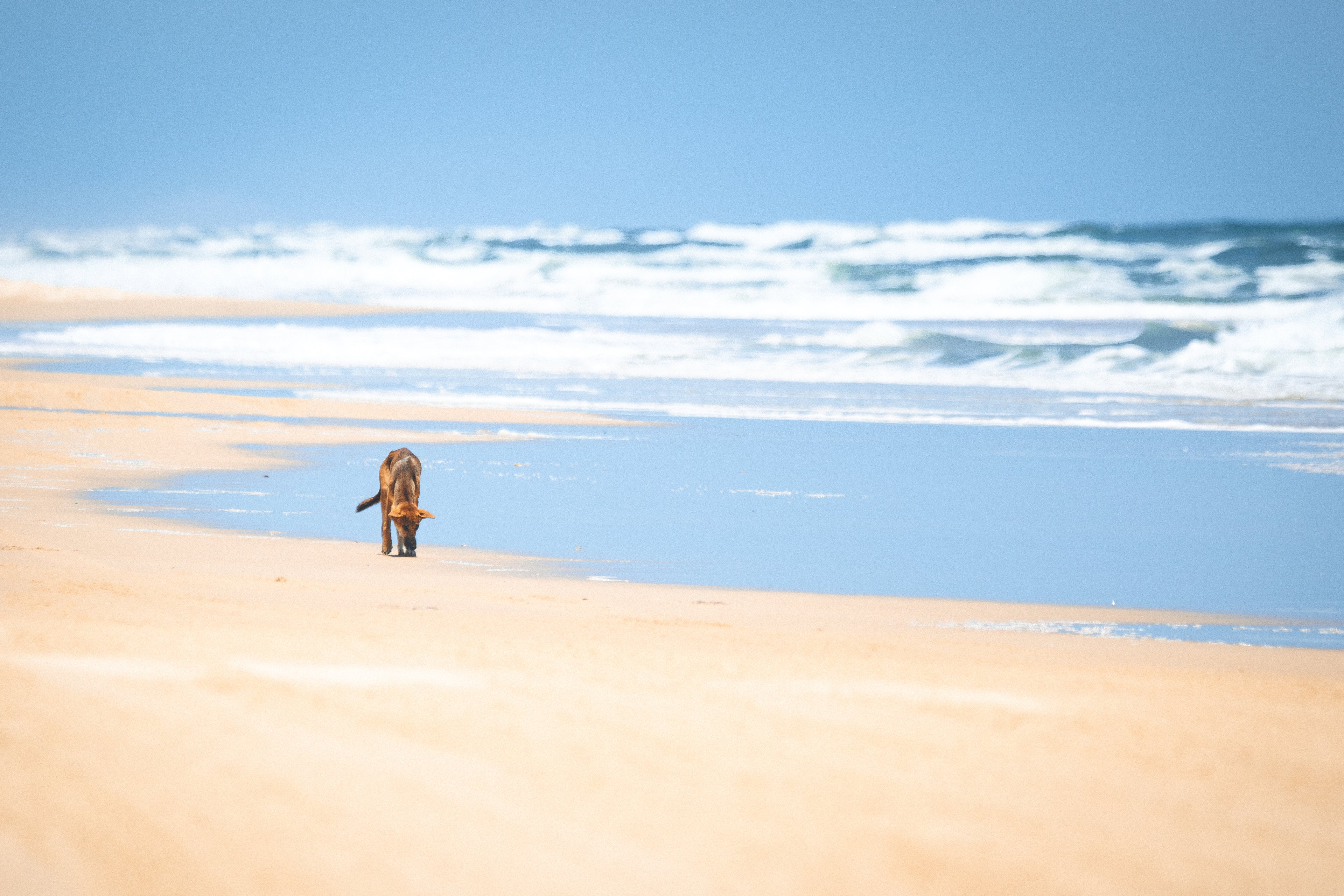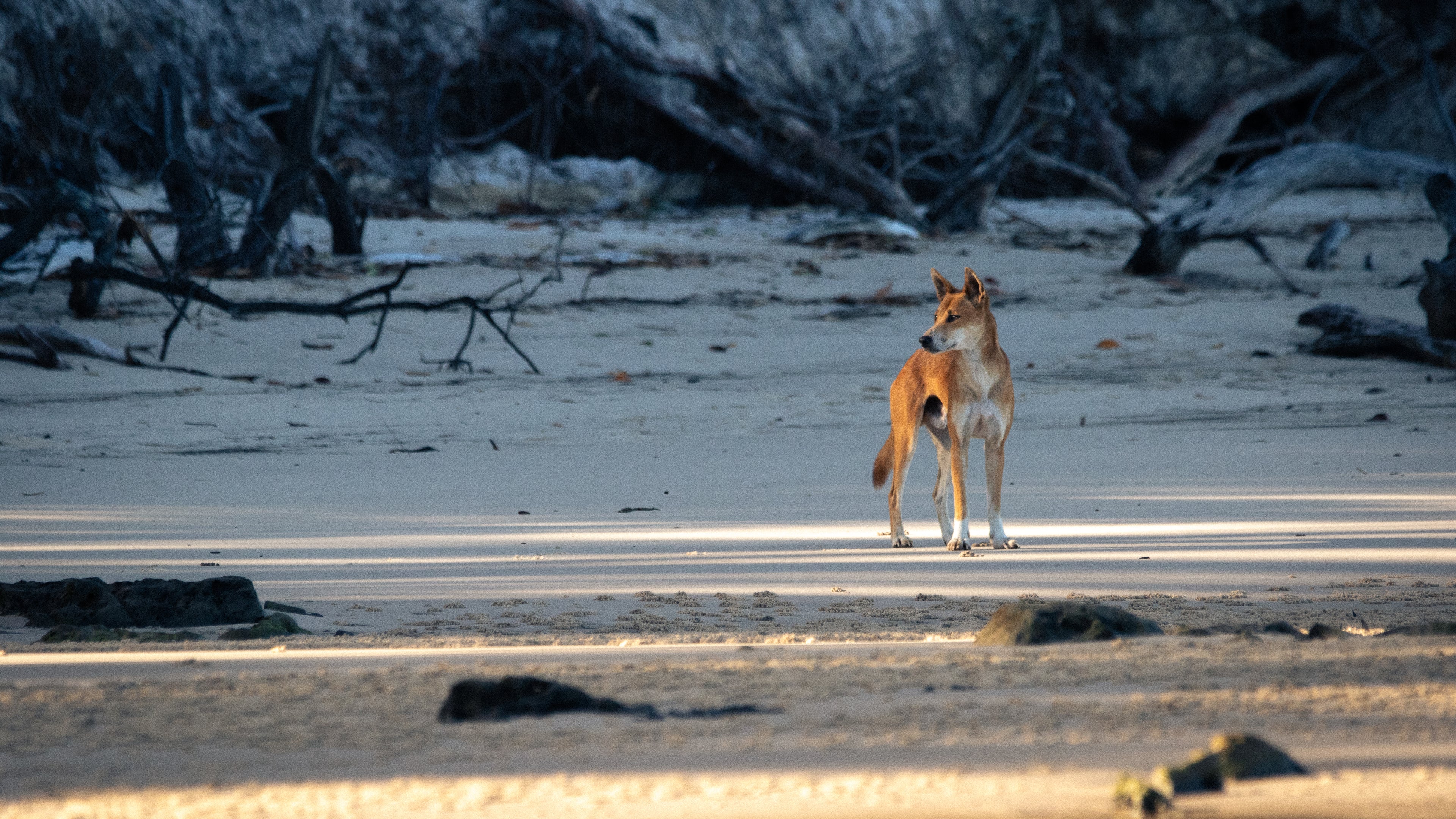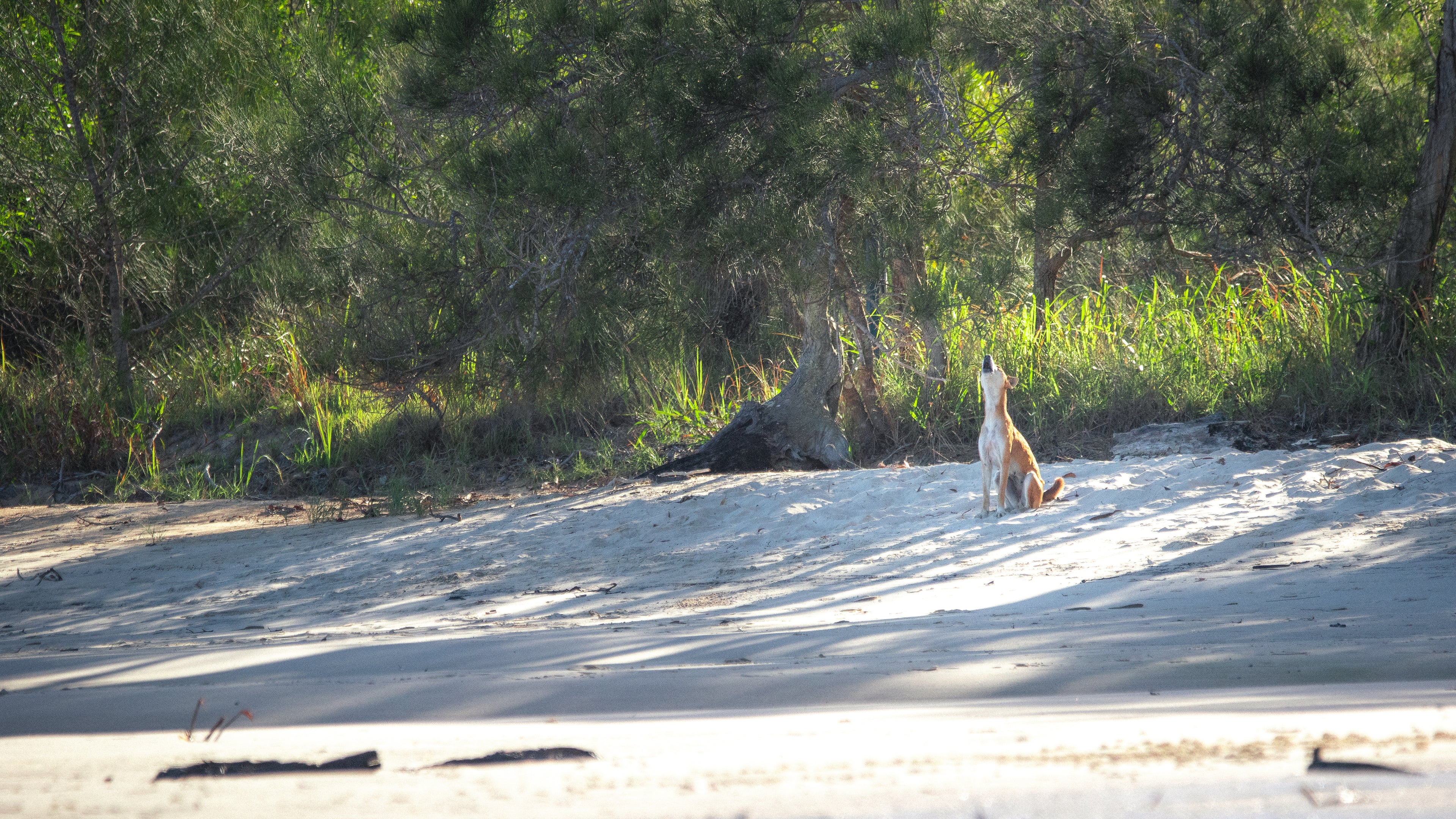 The photo above was taken by the powerful surf of Seventy-Five Mile Beach. Staying here has given me a fascinating insight into the human-dingo conflict, something which I haven’t really come across before. They are definitely wild predators, which I was frequently reminded of by the many signs decorating the island, and have injured and killed people in the past. Mostly these are children, or people on their own unable to defend themselves. Runners also have been attacked, as running sets off their predator instinct. The issue is exacerbated by the fact that the Dingoes are really quite adorable, resembling a Shiba Inu dog with a short fluffy tail curled up behind them whilst they trot. There are, however, quite simple rules that people can follow to dramatically reduce the chance of attacks: Never walk alone; always bring a stick to fend them off; stand tall, hold your arms close to your body, and shout for help if they approach you; and never, ever feed or interact with them. The last point is particularly important, and is unfortunately quite common among many animals, such as cassowaries, seagulls, and monkeys. Feeding a wild animal teaches it that humans are a source of food, and they can become aggressive in search of it. All of the Dingoes that I came across were thankfully extremely calm, and I was able to quietly watch them pass by. They are a remarkable animal, and a joy to observe. I was even lucky enough to see them howling, which was the first time I had ever heard that incredible sound. They are lovely creatures, but they are predators, yet we absolutely, without a shadow of a doubt, have the tools and knowledge to live alongside them in the harmony they deserve.